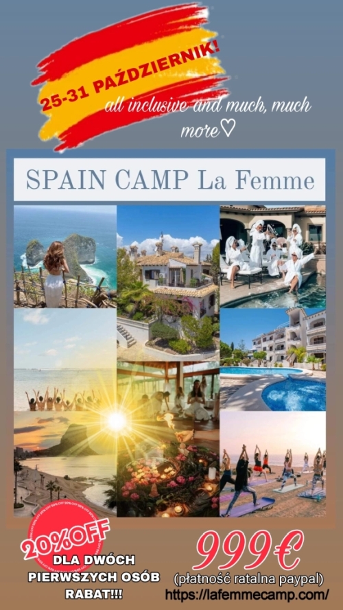 Zapraszamy Cię na wyjątkowy, czterodniowy obóz SPAIN Camp LaFemme, stworzony specjalnie dla kobiet przez salon kosmetyczny La Femme. To idealna okazja, aby zrelaksować się, naładować energię i zadbać o siebie w malowniczym otoczeniu Cabo Roig.